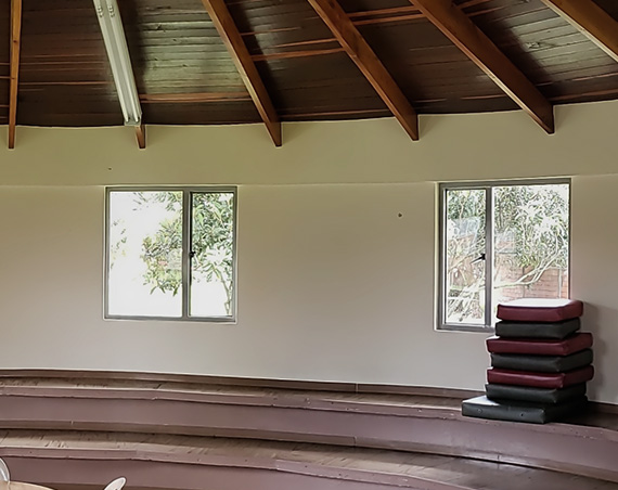 Este salón tiene una distribución circular en niveles, lo que le da un toque único y cómodo. Su capacidad es de hasta 50 personas, y está equipado con cojines para el descanso, proporcionando un ambiente relajado y acogedor. Además, su excelente ventilación asegura un ambiente fresco y agradable, lo que lo convierte en uno de los salones preferidos por los grupos. El Kiosko también cuenta con una mesa auxiliar para mayor comodidad de los asistentes.
